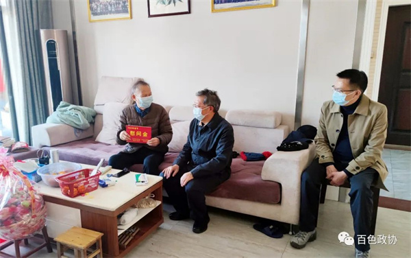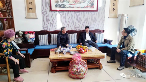 1月12日,受市政协主席石国怀委托,市政协副主席、党组副书记黄建宁在百色城区走访慰问部分离退休干部,代表市委、市政府向他们送去党和政府的关怀和温暖,致以新春的祝福。