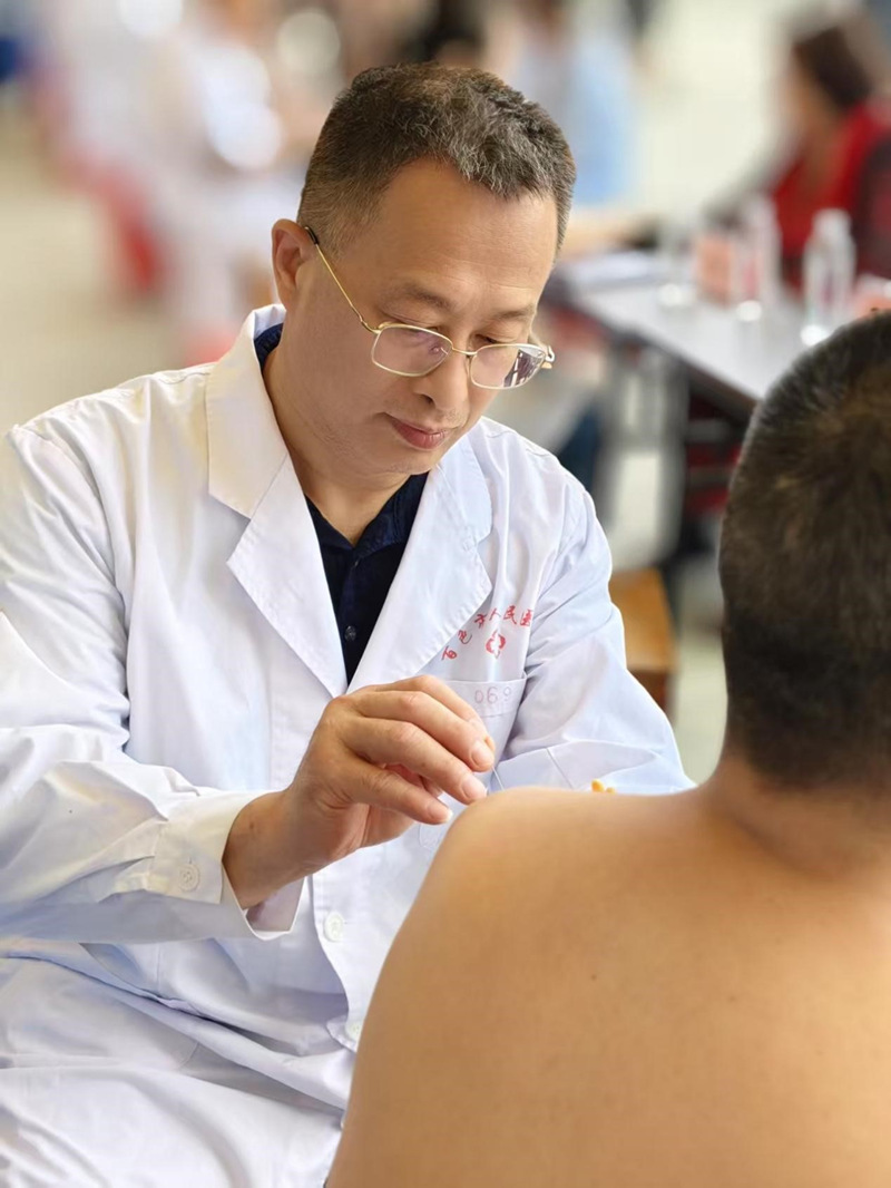 陈苍海主任长期深耕中医,坚持匠心仁术解脊忧,坚持“以手代药,以巧破力”的学术思想,运用中医整脊针刀技术治愈各种顽固性损伤和疼痛,彰显了中医整脊针刀技术在脊柱疑难疾病治疗中的独特价值。他将传统正骨“心法”与现代医学“技法”完美融合,既遵循“机触于外,巧生于内”的古训,又实现了治疗参数的可控化和标准化,为中医药传统技术的现代化发展提供了良好典范。他以精湛的技艺、深厚的理论功底、执着的钻研精神和无私的奉献情怀,在平凡的岗位上创造了不平凡的业绩。他是病患心中妙手回春的“活神仙”,是同行眼中技艺超群的“大师傅”,是传承发展祖国传统医学、弘扬工匠精神的坚定践行者。他以指为针、以掌为药,年门诊量3700人次,凭着一手一针,用匠心守护健康,用仁术温暖人心,解除患者疾苦。他进社区、进基层,开展义诊、开设讲座,传播中医针推文化,普及健康知识。他用中医推拿造福人类,将推拿的奇妙和现代医学技术相融合,在百色这片红土地上书写着新时代中医推拿针灸人的光荣与梦想。口周皎芮 图/文