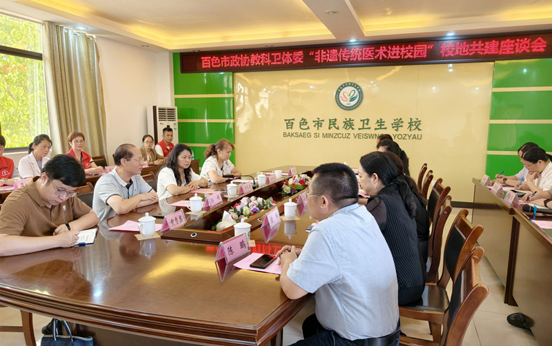 最后,召开校地共建交流座谈会,市政协教科卫体委、市卫生健康委、市中医医院、市民族卫生学校等相关负责人,非遗中医专家、学校师生代表等齐聚一堂,围绕中医(壮医)非遗融入医学教育体系、壮医人才培养、非遗传承创新、壮医服务等方面深入交流研讨。大家畅所欲言、各抒己见,凝聚共识,一致认为非遗传统医术是中华优秀传统文化的瑰宝,纷纷表示将以此次活动为契机,持续推动非遗与教育深度融合,让中医药文化在校园落地生根、薪火相传。