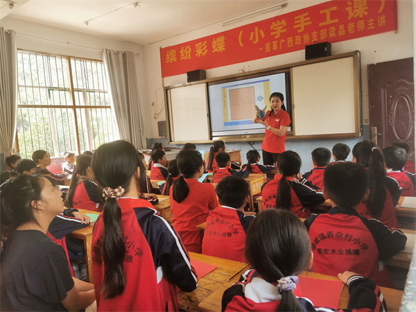 在隆林县德峨乡弄杂小学,工作组召开了捐赠助学座谈会,详细了解学校情况和学生的学习生活情况,并组织爱心企业为弄杂小学捐赠了一批书籍和学习用品,为20名家庭困难学生捐赠助学金。民革广西政协二支部常务副主委梁 晶还为弄杂小学的学生带去了一堂精彩的手工课,深受学生的喜爱。鄢永库主委到学生宿舍察看住宿情况,并勉励广大学子努力学习、奋发向上、成长成才,不辜负爱心人士的厚爱和期望。口王大理 图/文